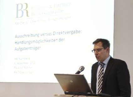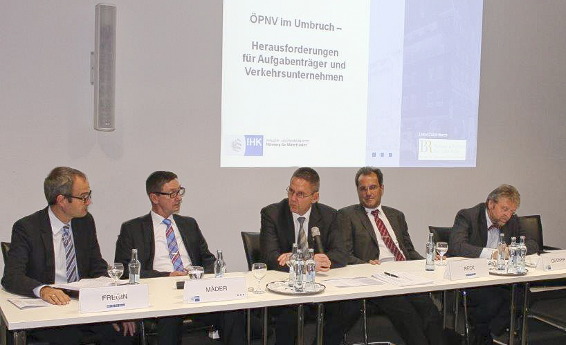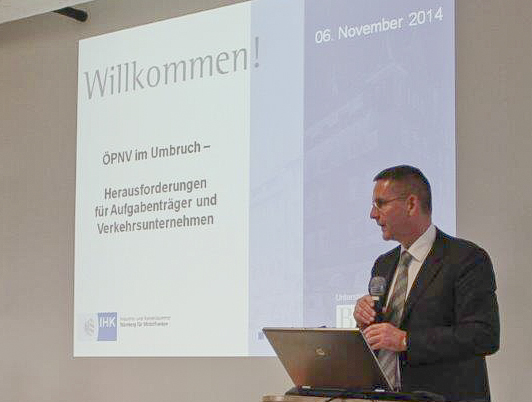Am 6. November 2014 fand eine von rund 140 Teilnehmern besuchte Gemeinschaftsveranstaltung der IHK und der Bühner & Partner Rechtsanwälte in Nürnberg statt. Anlass waren das Inkrafttreten neuer EU-Regularien und darauf beruhende erhebliche Meinungsverschiedenheiten zwischen privaten Verkehrsunternehmen und ÖPNV-Aufgabenträgern hinsichtlich der Frage, wie die Nahverkehrsplanung der Städte und Landkreise mittelstandsfreundlich und unter Berücksichtigung der Interessen der vorhandenen privaten Verkehrsunternehmen durchgeführt werden kann. Zu Wort kamen Experten der beiden Veranstalter IHK Nürnberg sowie der Bühner Rechtsanwälte und des Bayerischen Städtetages, des Bayerischen Staatsministeriums des Inneren, für Bau und Verkehrs, Landrat Matthias Dießl vom Landkreis Fürth, Vertreter öffentlicher und privater Verkehrsunternehmen, des Verkehrsverbunds Großraum Nürnberg und der Regierung von Mittelfranken.