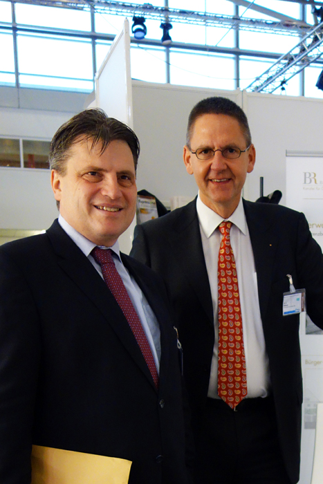 Am Beispiel von Schulen, technischen Gebäuden, Schwimmbädern, Rathäusern und Einzelhandelsprojekten informierten die Ausstellungspartner Rechtsanwalt Arnd Bühner und Dipl. Ing. Marc Pfaller die Teilnehmer des CSU Parteitags in der Neuen Messe München über erfolgreiche Kooperationen der öffentlichen Hand und privater Investoren.